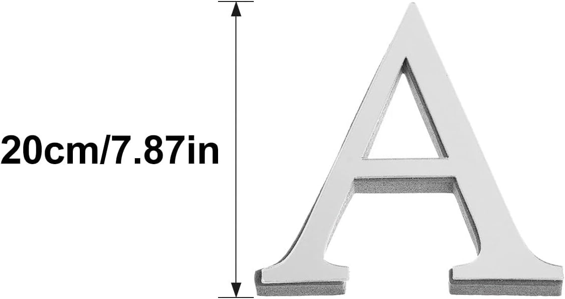 Features: Made of waterproof acrylic, these 3D mirror wall stickers create a mirrored effect on the wall, adding a touch of visual art to your room. The wall stickers can make your home look charming and bright, the 26 letters add more warm and sweet atmosphere, suitable for your home or office, giving your room a new look. Mirrored silver letters for wall are suitable for any flat and smooth surface, such as windows, walls. You can use it to decorate your living room, bedroom or office. Specifications: item type: 3D Acrylic Alphabet Mirror Wall Stickers, Self-Adhesive Sign Letters Material: Acrylic Size: 11.81in/30cm Color: Silver Package included: 1pcs x 3D Acrylic Alphabet Mirror Wall Stickers Notice: As different computers' display, the color will have a little difference from the pictures
