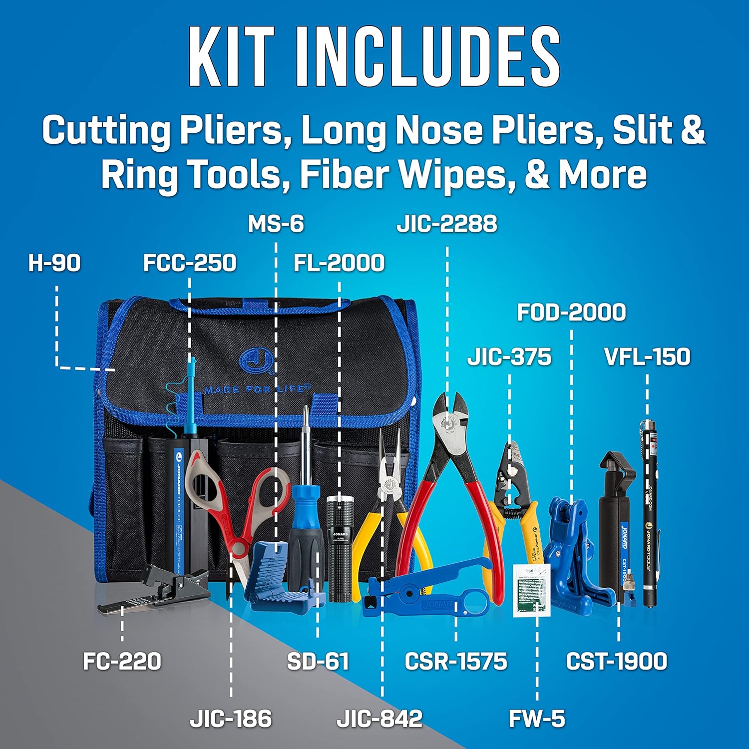 Featuring our most popular slitting, ringing, stripping, and cutting tools, this Fiber Prep Kit+ provides a large array of tools needed to access and prepare fiber optic cables for termination. This tool kit features the following: JIC-375 strips the 1.6 mm-3 mm fiber jacket, 600-900 micron buffer coating, and 250 micron coating of fiber cables to expose the 125 micron glass fiber JIC-186 is perfect for cutting Kevlar , cabling insulation, tape, cable ties, and other materials with ease BTR-6, FOD-2000, MS-306, and CST-1900 slit and ring a variety of fiber optic cables Also includes cutting shears, pliers, fiber wipes, flashlight, and multi-bit screwdriver in a rugged case