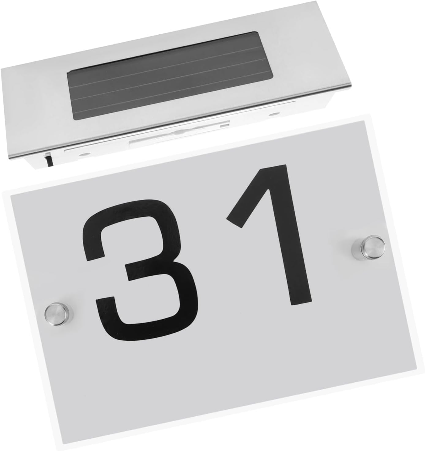 Package Include 3 x set of solar address plaque number Characteristics -Solar panel: 2V120Mah lighted house numbers -Charging: 5-6H numbers for house -Work: 6-8H or more solar address sign -Battery: 1.2V 600ma house address numbers -Color:Silver illuminated house numbers -Material:Stainless steel house address numbers for outside -Color temperature: 6500K white light lighted address numbers for house. -Size:18.50X7.50X4.70cm/7.27X2.95X1.85in house numbers -The bright LED lights used in this plaque light clear visibility of house number, even in low light conditions house number plaques. -The installation of this address plaque is convenient and , as it does not require any power cords light up house numbers. -A solar-powered address plaque that utilizes to provide illumination for house number home numbers for address. -The stainless steel construction of this plaque ensures its durability and suitability for outdoor use numbers for house address outside. -The technology incorporated in this plaque ensures that it automatically illuminates when needed outdoor house numbers.Goods Descriptionnumbers for house address outside Enhance the appearance of your home with this sleek and modern address plaque.house number light The reliable technology ensures automatic on/off functionality.house numbers Powered by solar energy, solar address number eliminates the need for power cords and is easy to install