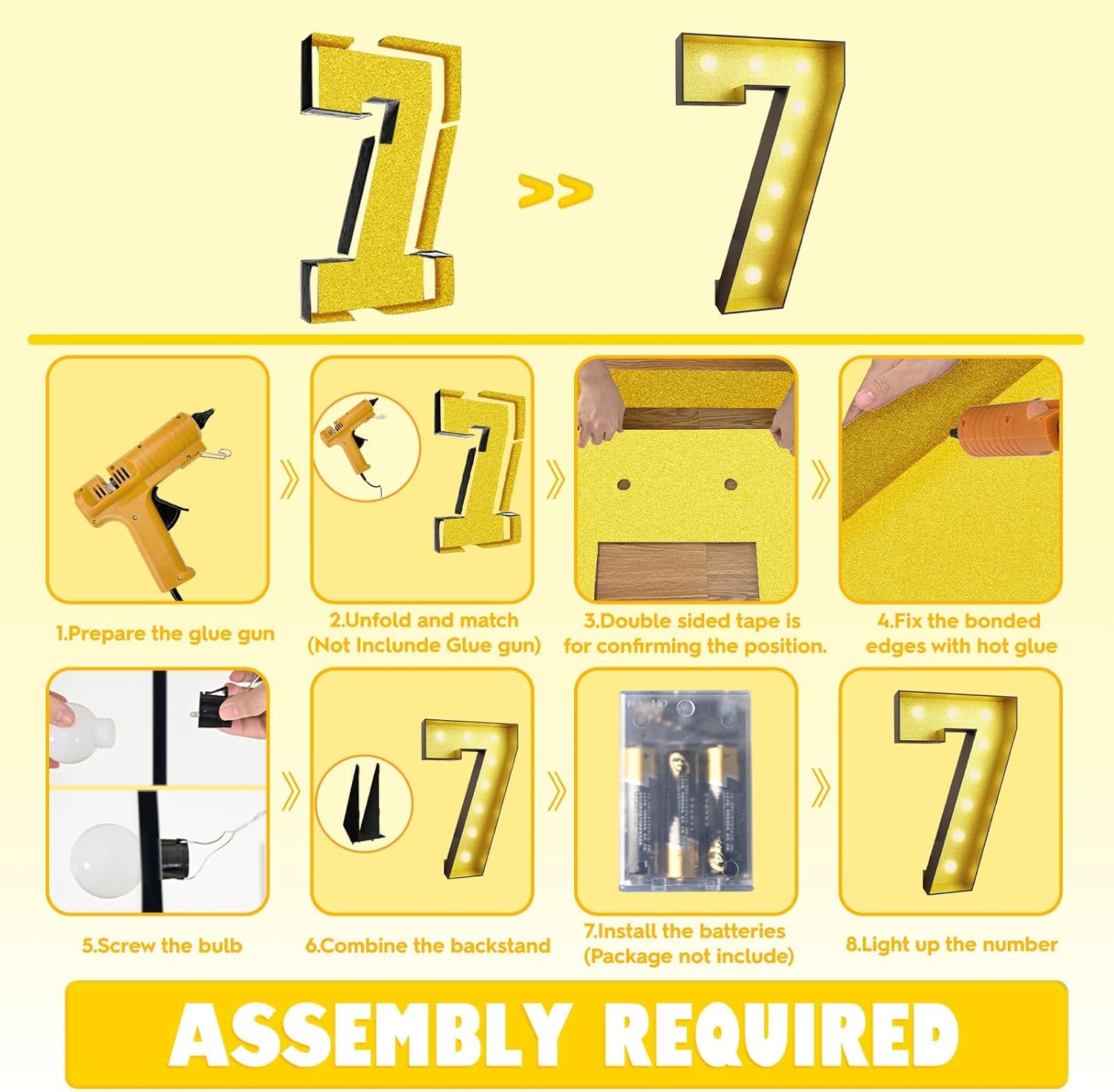 | Included Components | detailed instruction manual, double-sided adhesive tape, string of warm light bulbs, pre-cut foam board shaped as the number 40 |