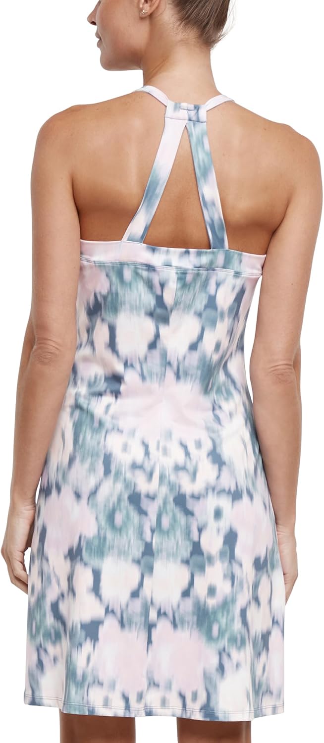 Elevate your wardrobe with this stunning dress, designed to impress with its 36" length from High Point Shoulder (HPS). Featuring a chic halter-neck and a flattering fit-and-flare silhouette, this sleeveless dress ensures you stay comfortable and stylish. The inside shelf bra provides added support, while the UPF finish and moisture-wicking fabric keep you cool and protected. Crafted from high-quality Jersey FP fabric, this dress is perfect for any occasion.