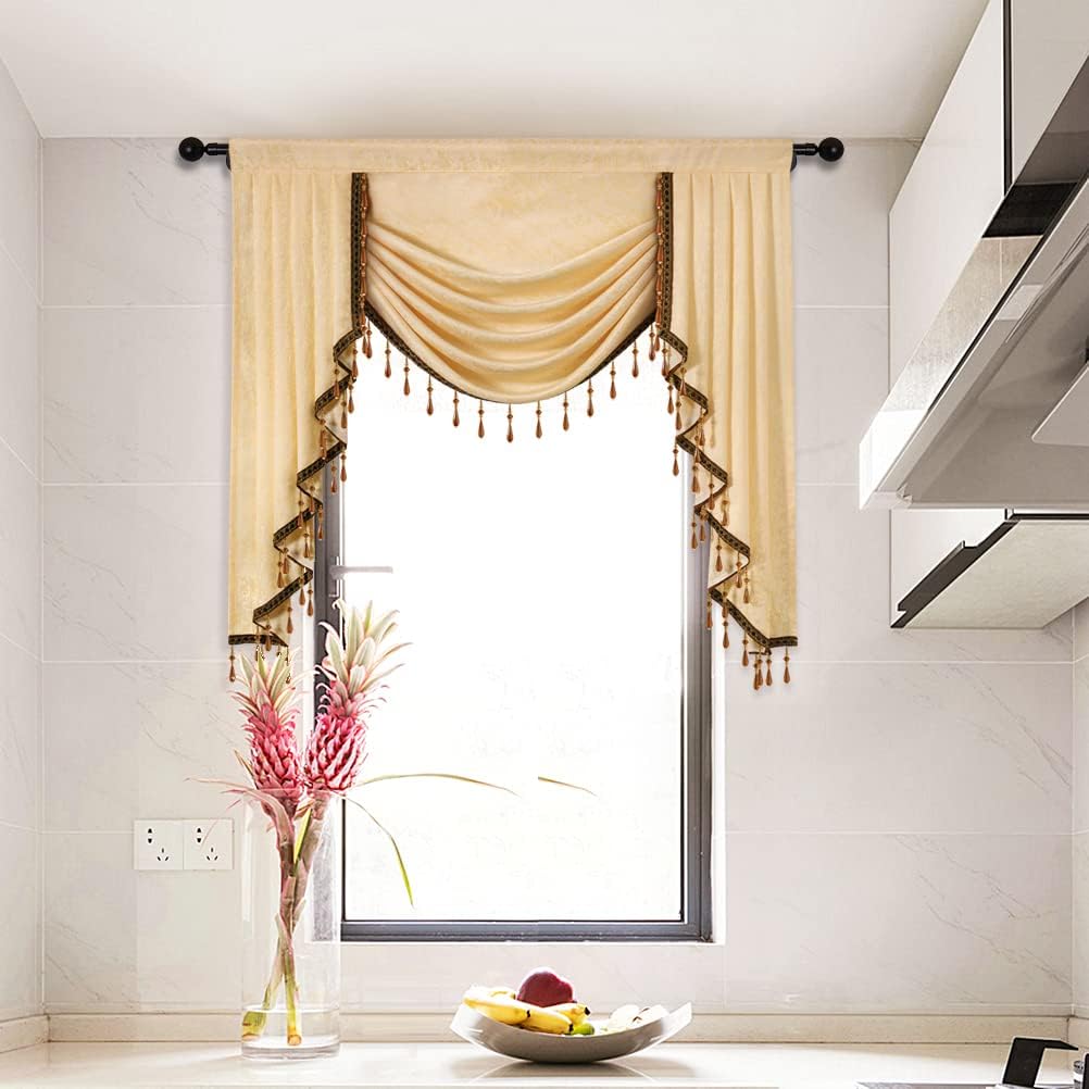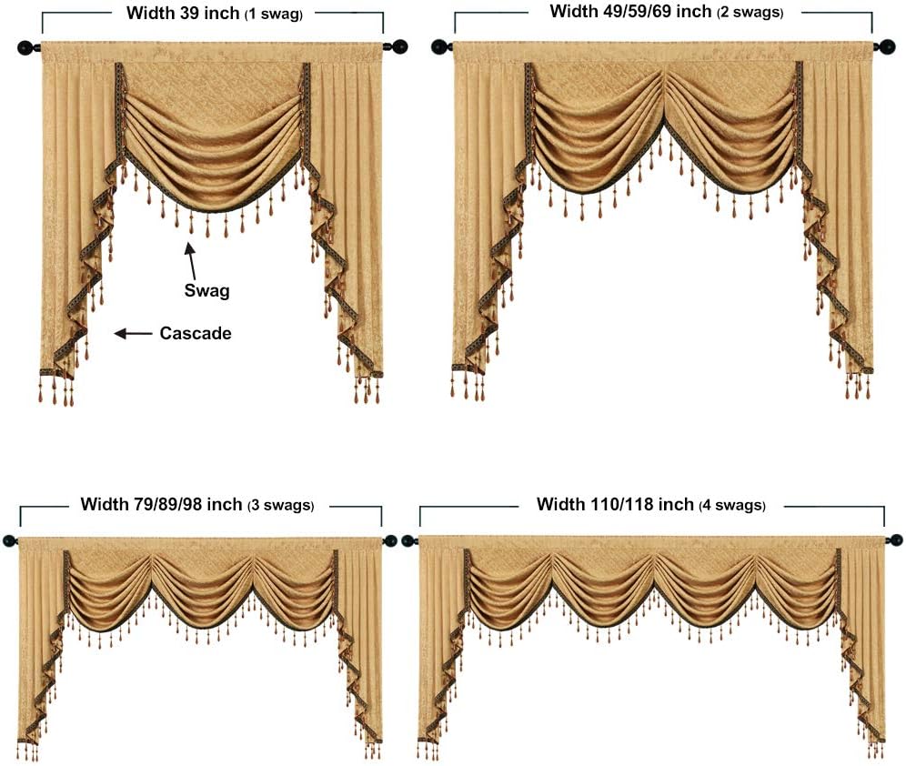 ❤Size: 1 piece valance, 59" wide with 3" pocket. swag near 22"~24" long,cascade 43"~47" long.