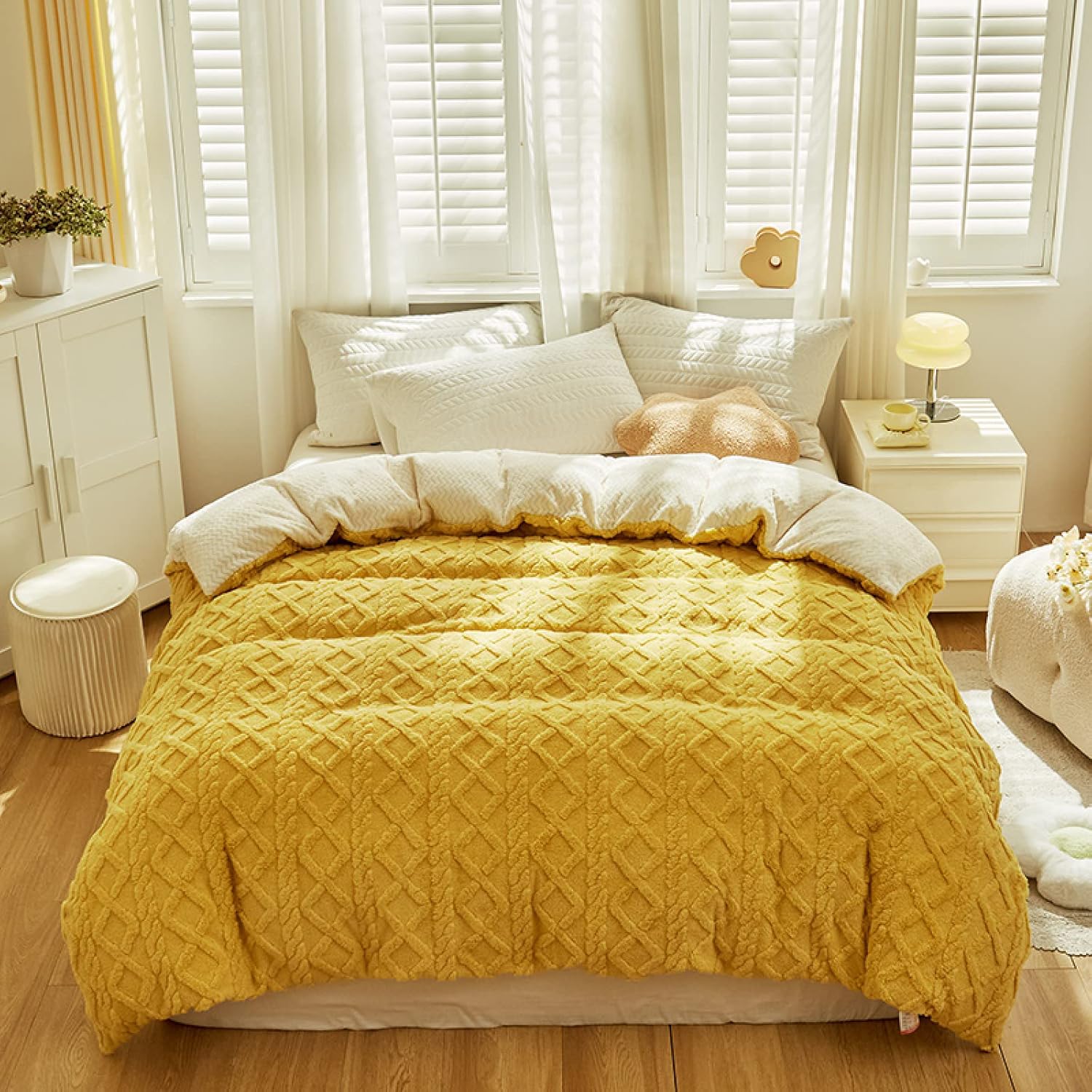 This duvet cover designs with velvet flannel fabric,giving you the most comfortable feel and warm atmosphere for a restful sleep.Don’t be surprised if you sleep through your alarm.Our duvet cover set promises sweet vacation-quality slumber.It is also very perfect to cuddle under during chilly days and nights!Why choose our Plush Shaggy Duvet Cover Set?- High quality fabric with the exquisite workmanship,making this duvet cover do not easy to lose fur. Wrinkle, fade and pilling resistant.- Each duvet cover is featured with zipper closure and corner ties,making the duvet cover easy to use.- In the summer, it can be used alone as a bed blanket that provides you with enough comfort.And in winter,you can easily get enough warmth simply by inserting your duvet into the duvet cover.Package includes:1xcomforter cover(comforter is not included in the set ).100% Satisfaction guaranteedWe are so confident with so many years experience in bedding manufacturing that you will fall in love with this product,If there is any problems or concerns,please feel free to contact us.