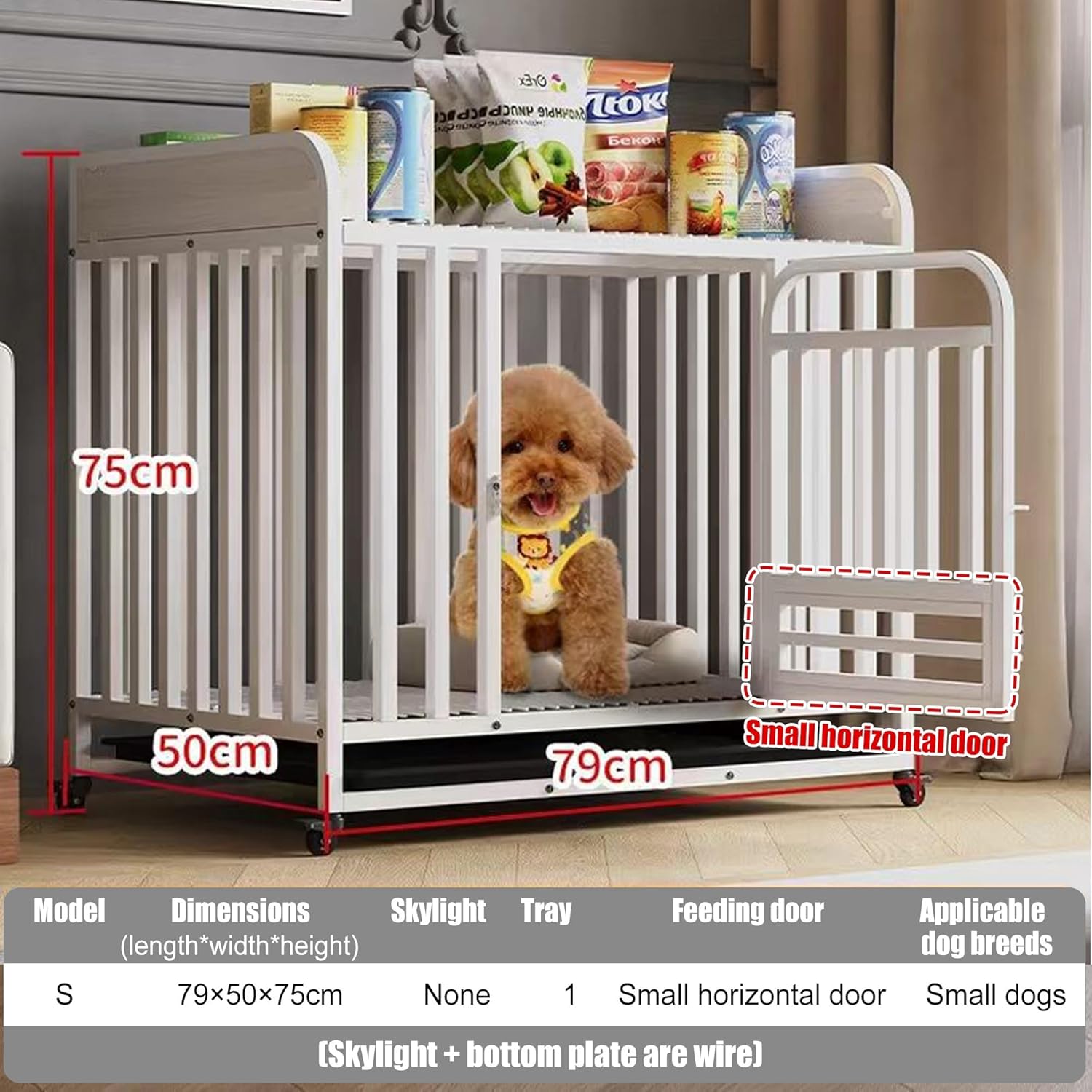 This dog cratw furniture can provide a comfortable haven for your dog. The spacious storage space on the top of the dog cage can be used as a storage rack or side table to save space. You can easily place decorations or items on the top. The classic and simple design will blend perfectly with your home decoration.Product name: dogcrate、dog crates furniture、pet crateModel: S/M/LMaterial: Steel frame + environmentally friendly board + ABSProduct size:S-79*50*75cmM-98*65*96cmL-110*72*105cmTarget audience: multiple pets, small, medium and large petsPackage content:Dog cage x 1Message:✔Due to shooting light and manual measurement, please allow slight color difference and 1-3 cm error. Please make sure you don't mind before ordering.✔If you have any questions after receiving the package, please feel free to contact me.