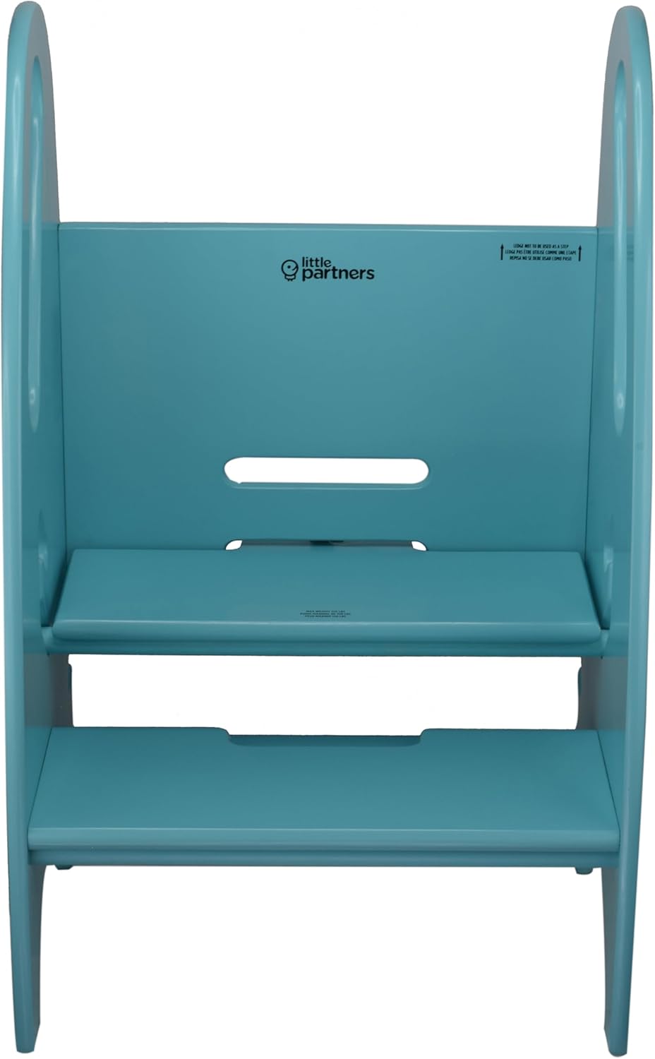 Our 3-in-1 Growing Step Stool is a secure kids helper stool for those who need an extra boost to reach the bathroom sink or kitchen countertop. The toddler helper tower allows your child to grow their independence as they practice healthy habits like washing hands and brushing teeth. This booster tower stool for toddler is a 3-position adjustable height step stool and features built-in handles for extra stability and support as your little one steps up. Ideal for growing children, this toddler stand for bathroom features a contemporary design with rounded edges, and is suitable for adults as well. In addition to meeting all government safety standards, our products have gone through ASTM testing. We go the extra step with Greenguard Gold Certification, contributing to cleaner indoor air and a healthier environment for you and your family. Please note that assembly is required using the included hardware. The growing toddler stool is designed for children and adults up to 200 lbs. This household stepstool helper is constructed from the highest-quality layered birch and poplar, finished in child-safe materials, and can easily be wiped clean with a damp cloth. Assembled dimensions: 20” (L) x 15” (W) x 32” (H).