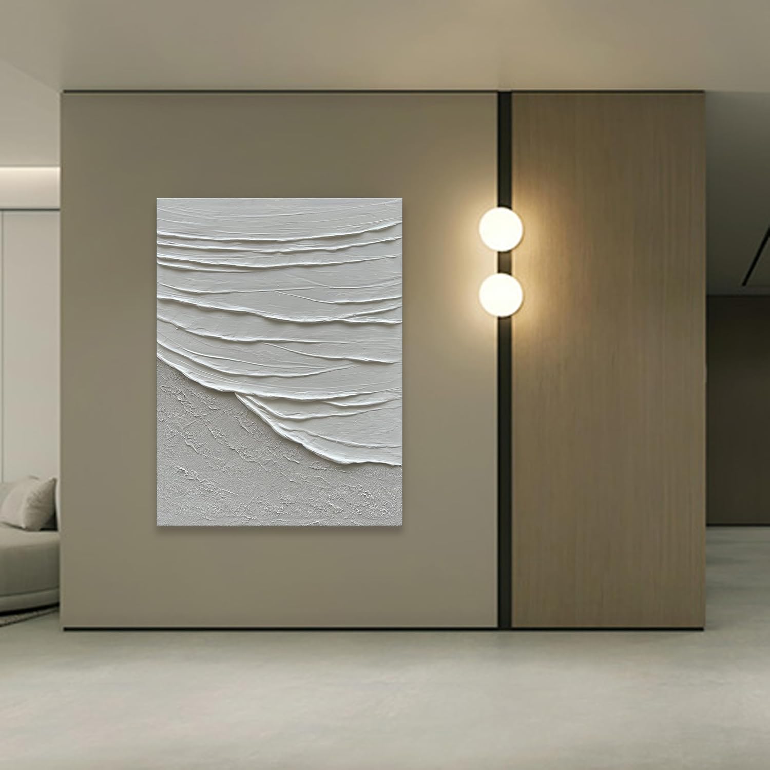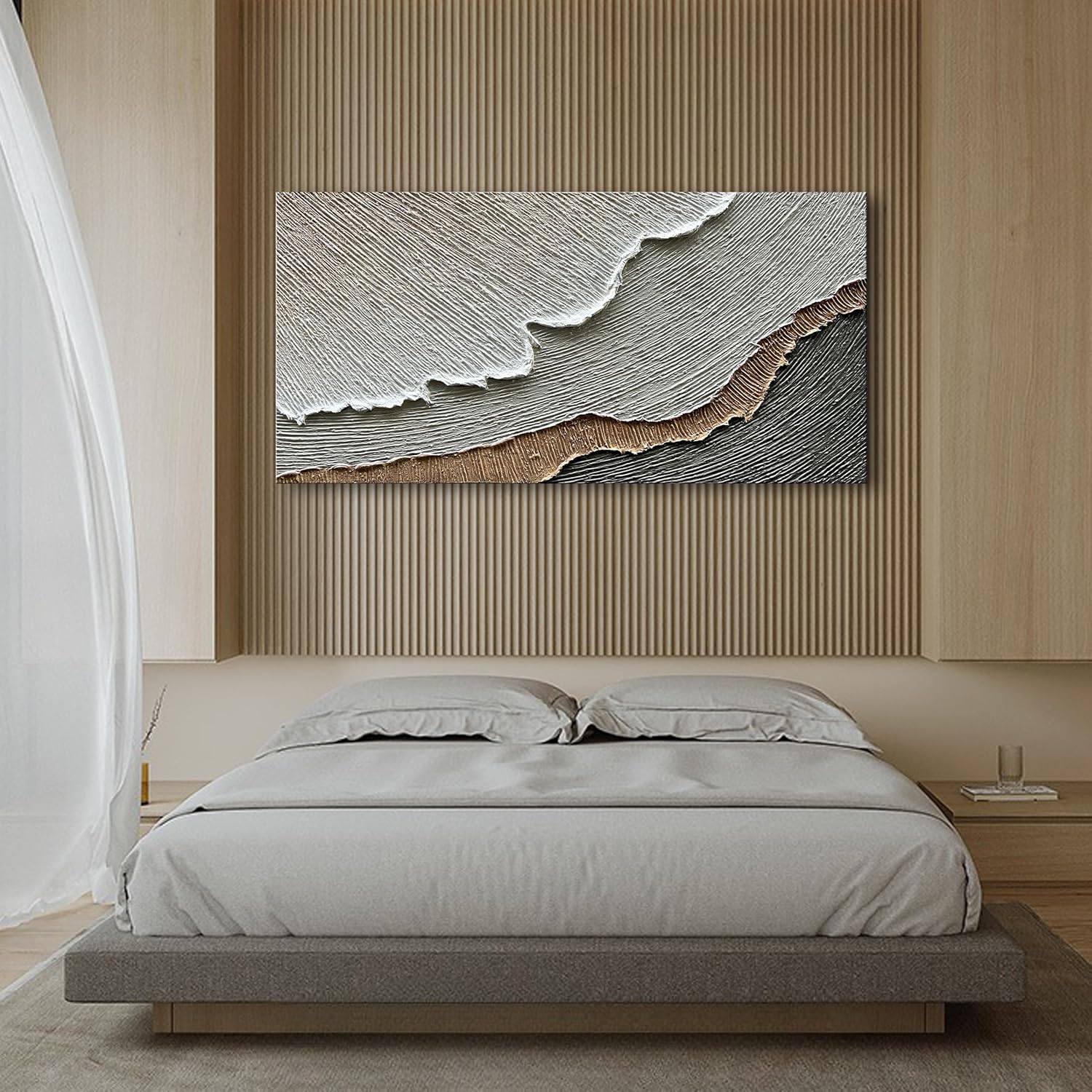 NANKAI Handcrafted Thick Texture Black and White Abstract Canvas Art Ocean Wave Beach Landscape Oil Painting Home Wall Art Deco Oil Painting 24X36 Inches