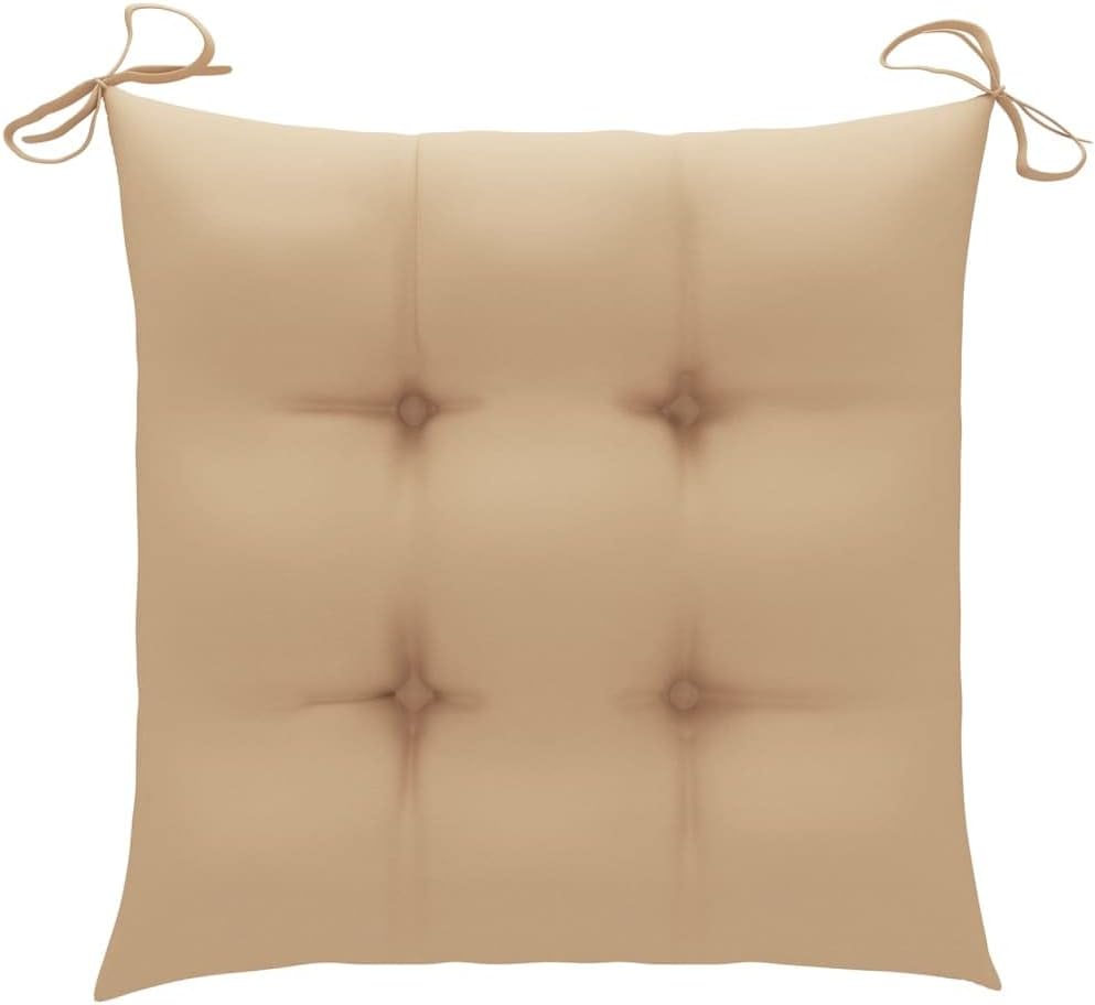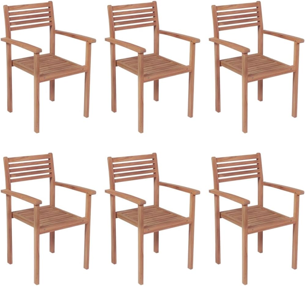 This set of wooden patio chairs has a timeless design. These outdoor chairs will suit a wide variety of s, such as homes, offices, bars and cafes, thanks to their simple yet stylish design.Constructed from extremely durable teak hard wood, this piece of teak furniture has been seasoned, kiln dried and then fine sanded to give a very smooth appearance. Teak wood is known for its exceptional strength and weather resistance, making it far more suitable for patio furniture than any other kind of wood. Teak wood is the choice if you want to purchase a long lasting piece of patio furniture.The garden seat is stackable to save storage space when not in use. The included cushion is more than a practical addition; it also has a decorative function.Cushion color: Cream whiteMaterial: Fine sanded teak hard wood with waterbase finishCushion material: Fabric (100% polyester)Dimensions: 22" x 20.1" x 35.4" (W x D x H)Seat width: 15.4"Seat depth: 18.5"Seat height from the ground: 17.5"Armrest height from the ground: 26.4"Cushion dimensions: 19.7" x 19.7" x 2.8" (L x W x T)Delivery contains:2 x Garden chair2 x Cushion